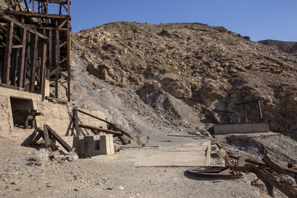 It turns out this isn't actually the mine, which is at the top of the hill; it's just the area where the ore was processed after being hauled down the hill on the aerial tramway.
