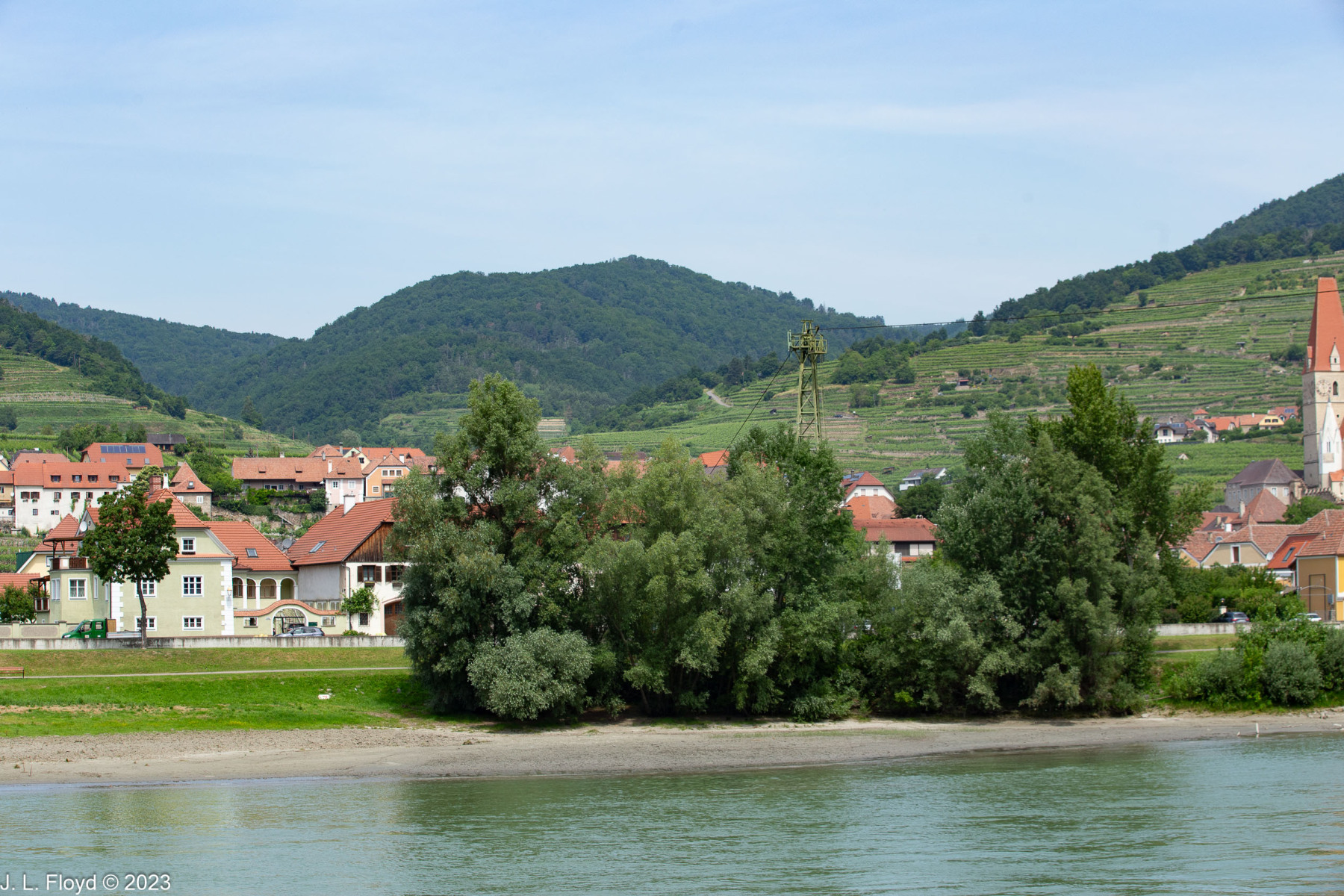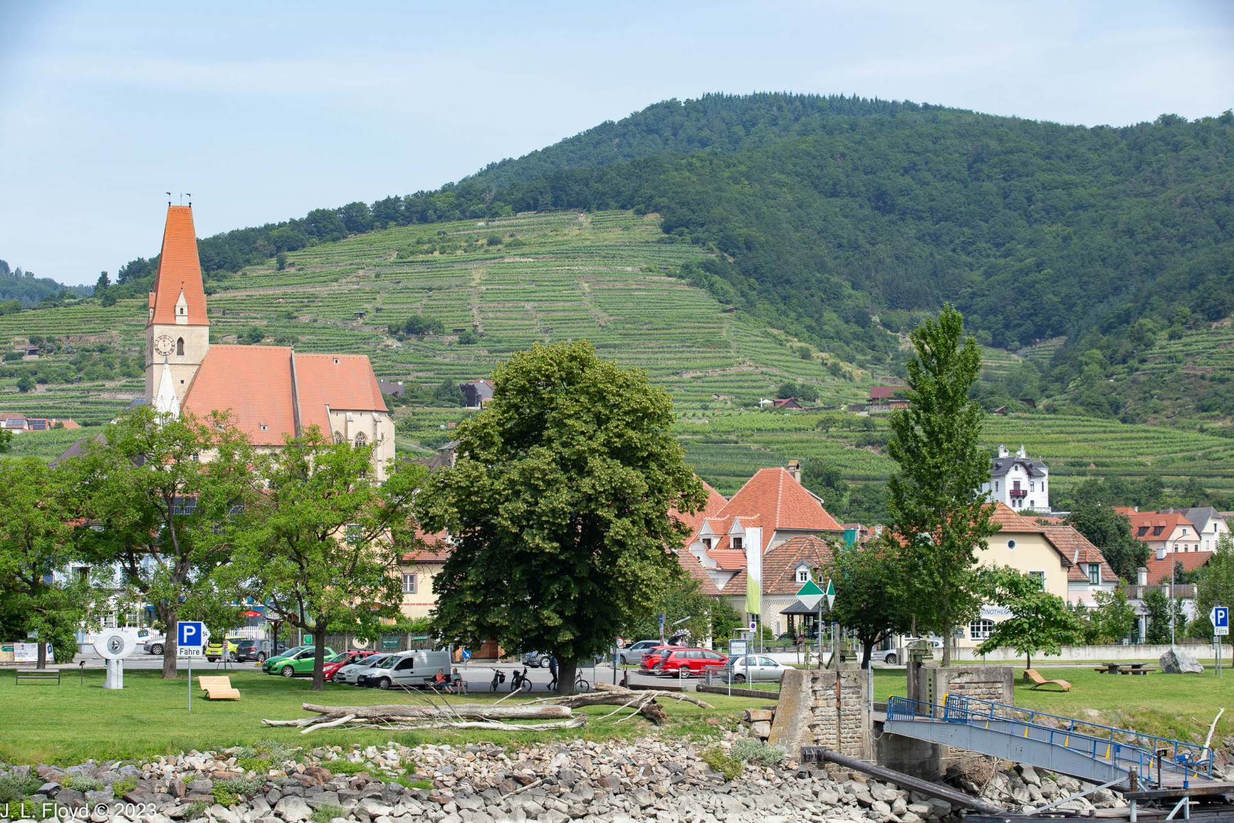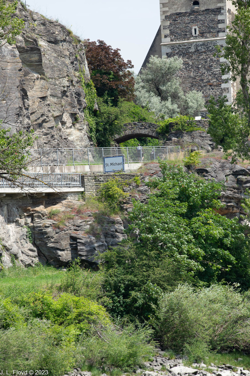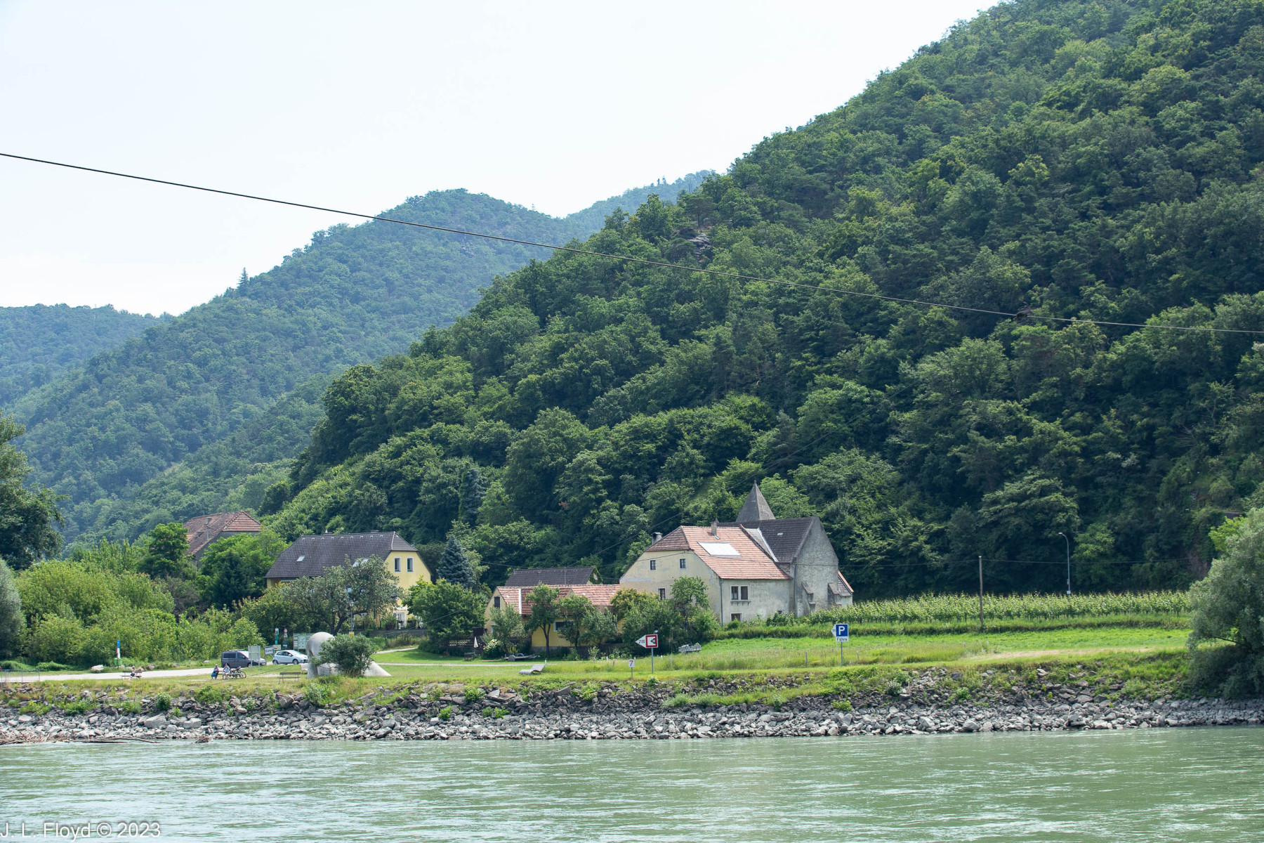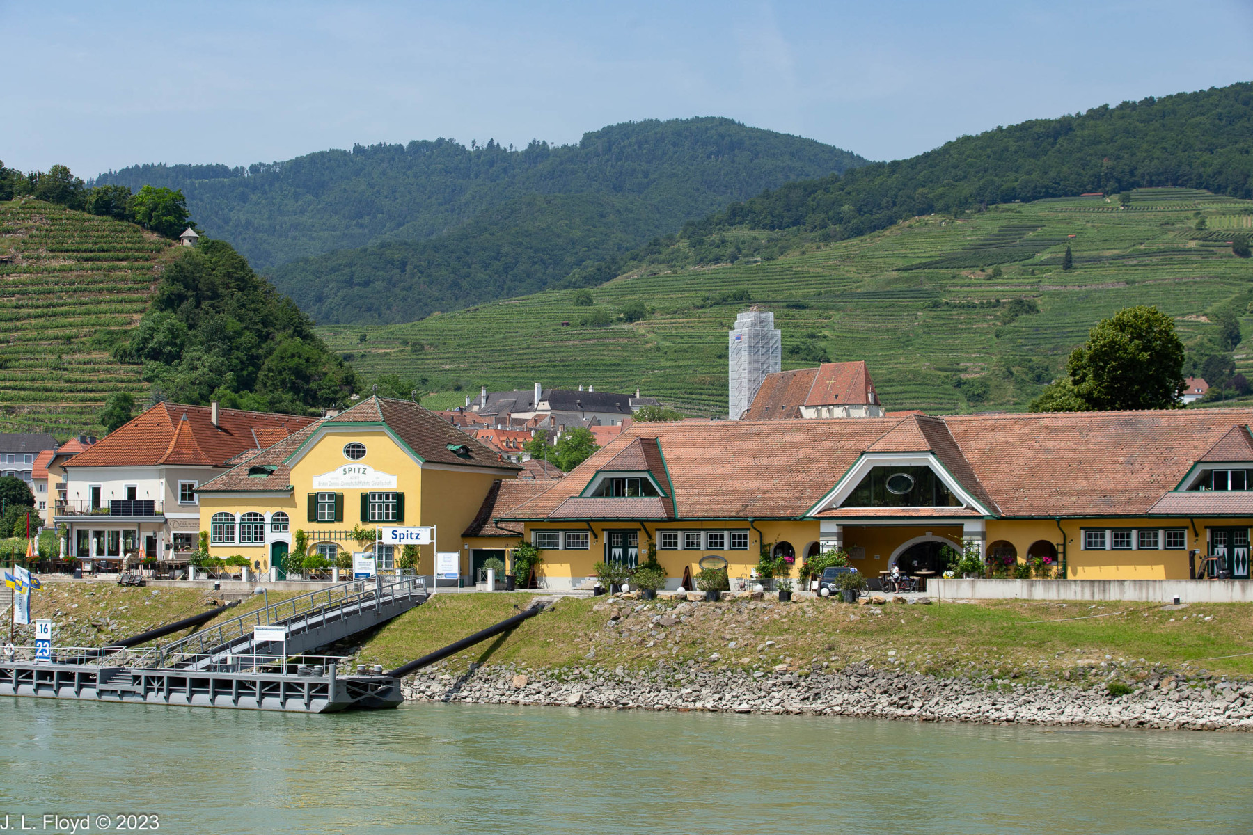 The Melk River flows almost parallel to the Danube, and through the town of Melk for a distance before it meets with the Danube. It creates a long peninsula which is part of the town of Melk but remains heavily wooded and relatively unspoiled. On the peninsula there is an arena, the Wachau Arena Melk, which is essentially a large theater tent where cultural events are hosted, most notably the Sommerspiele Melk, a drama and music festival held annually in June — sounds like a pleasant environment and experience.