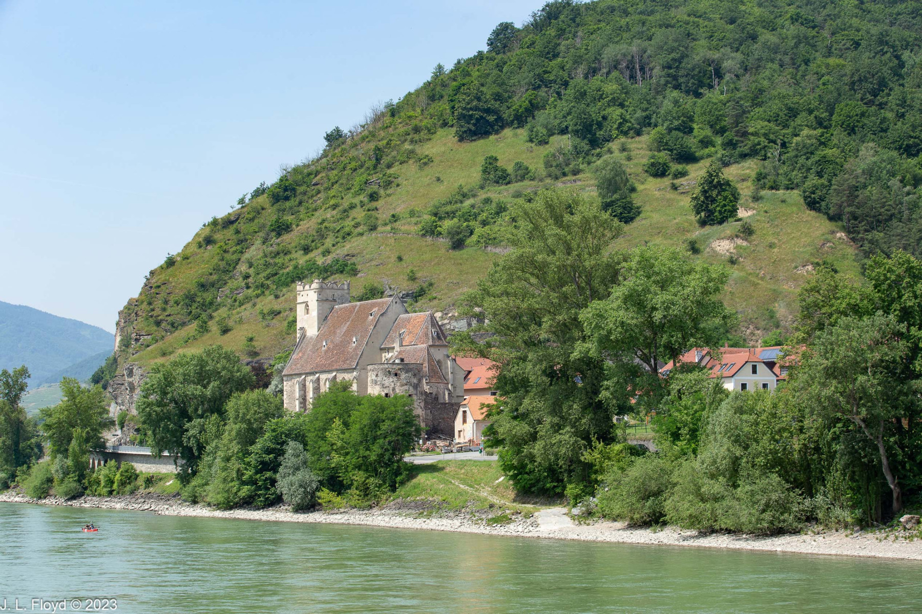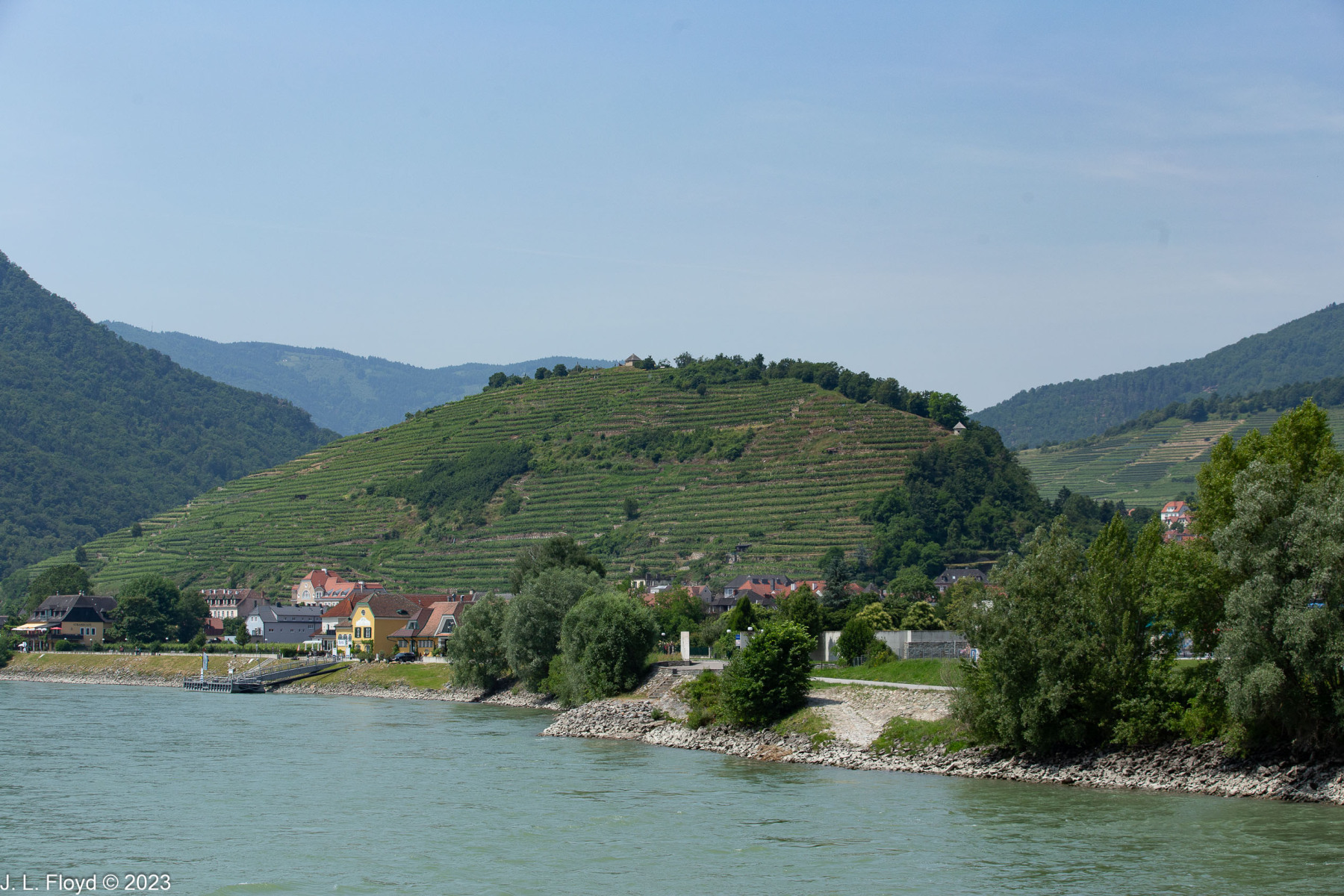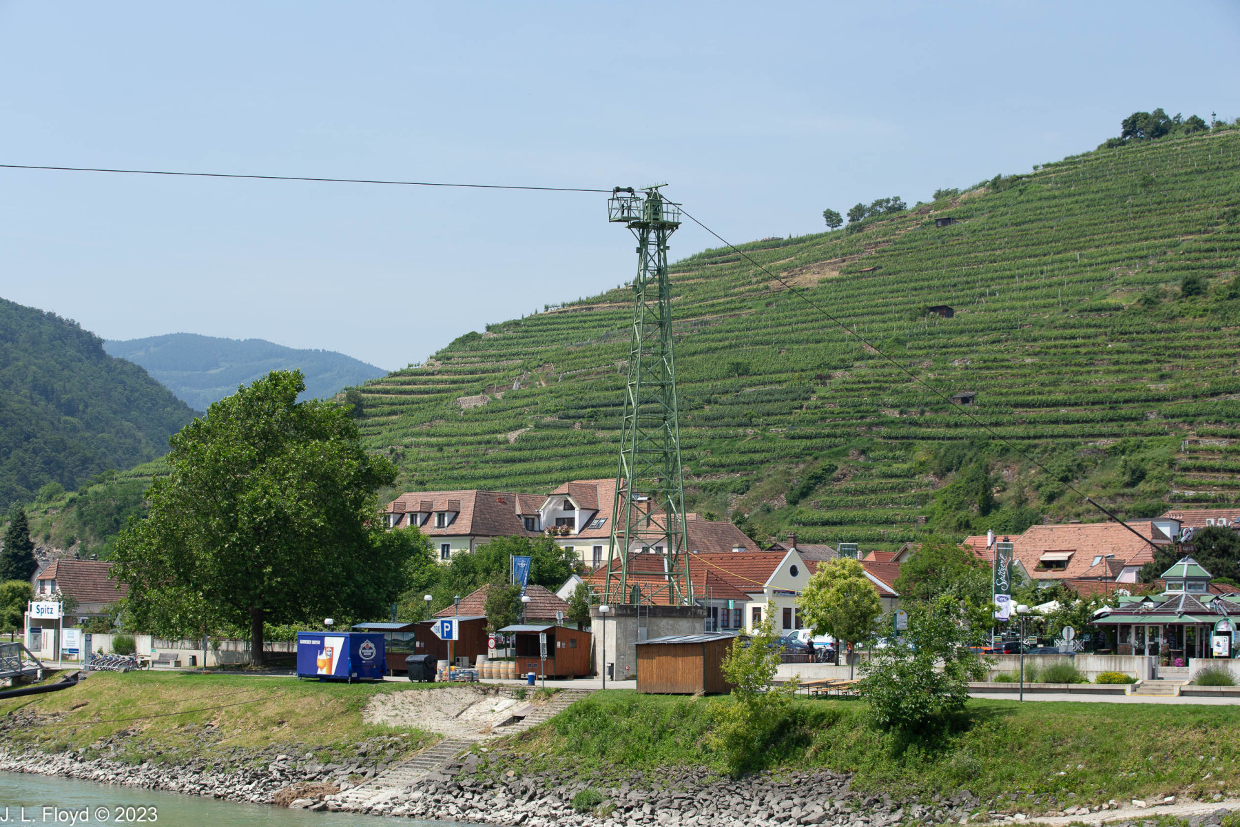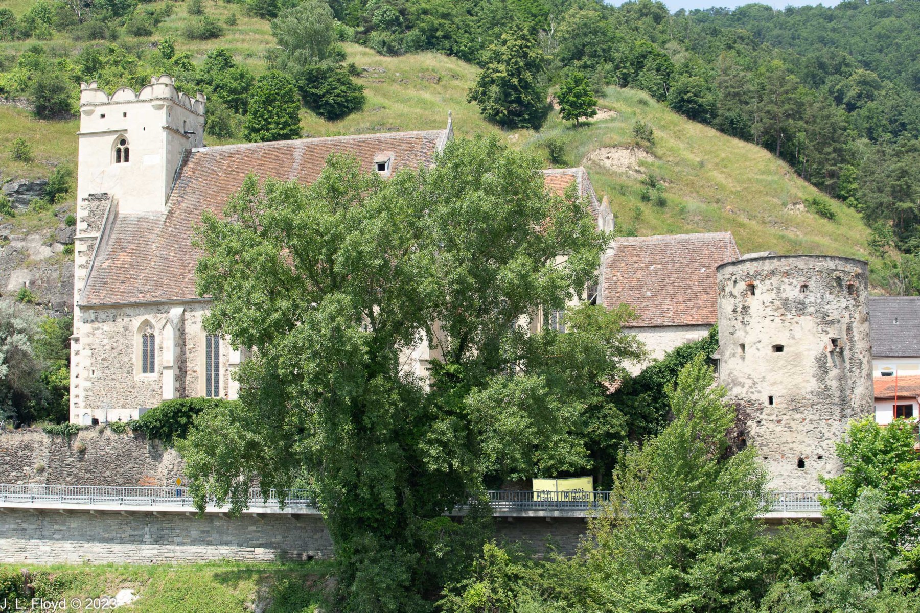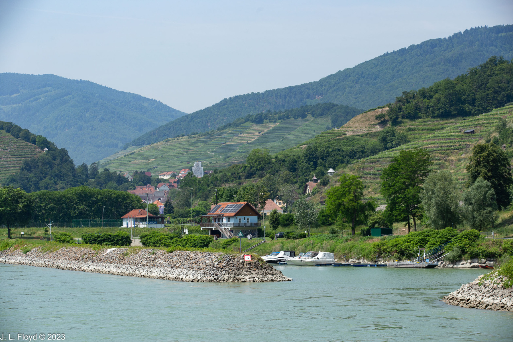 The Melk River flows almost parallel to the Danube, and through the town of Melk for a distance before it meets with the Danube. It creates a long peninsula which is part of the town of Melk but remains heavily wooded and relatively unspoiled. On the peninsula there is an arena, the Wachau Arena Melk, which is essentially a large theater tent where cultural events are hosted, most notably the Sommerspiele Melk, a drama and music festival held annually in June — sounds like a pleasant environment and experience.