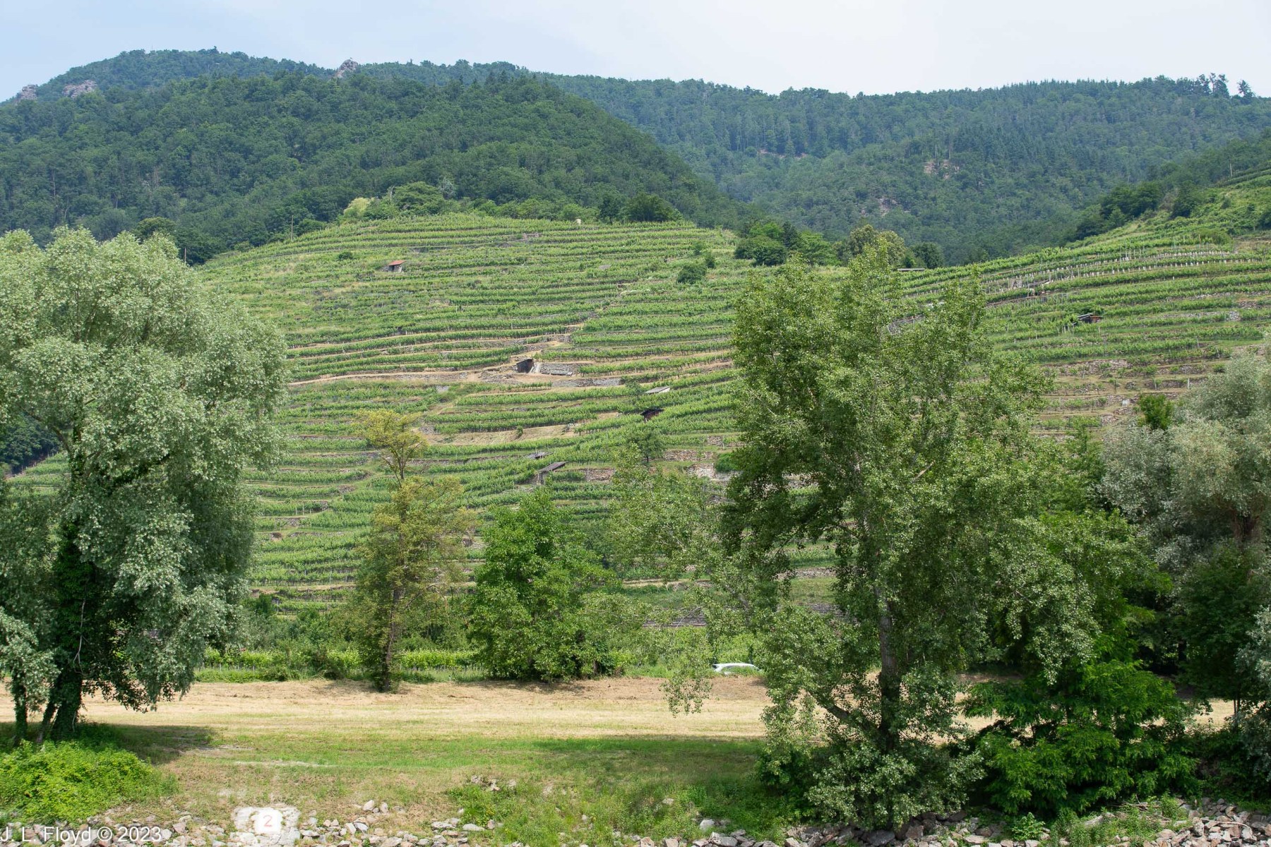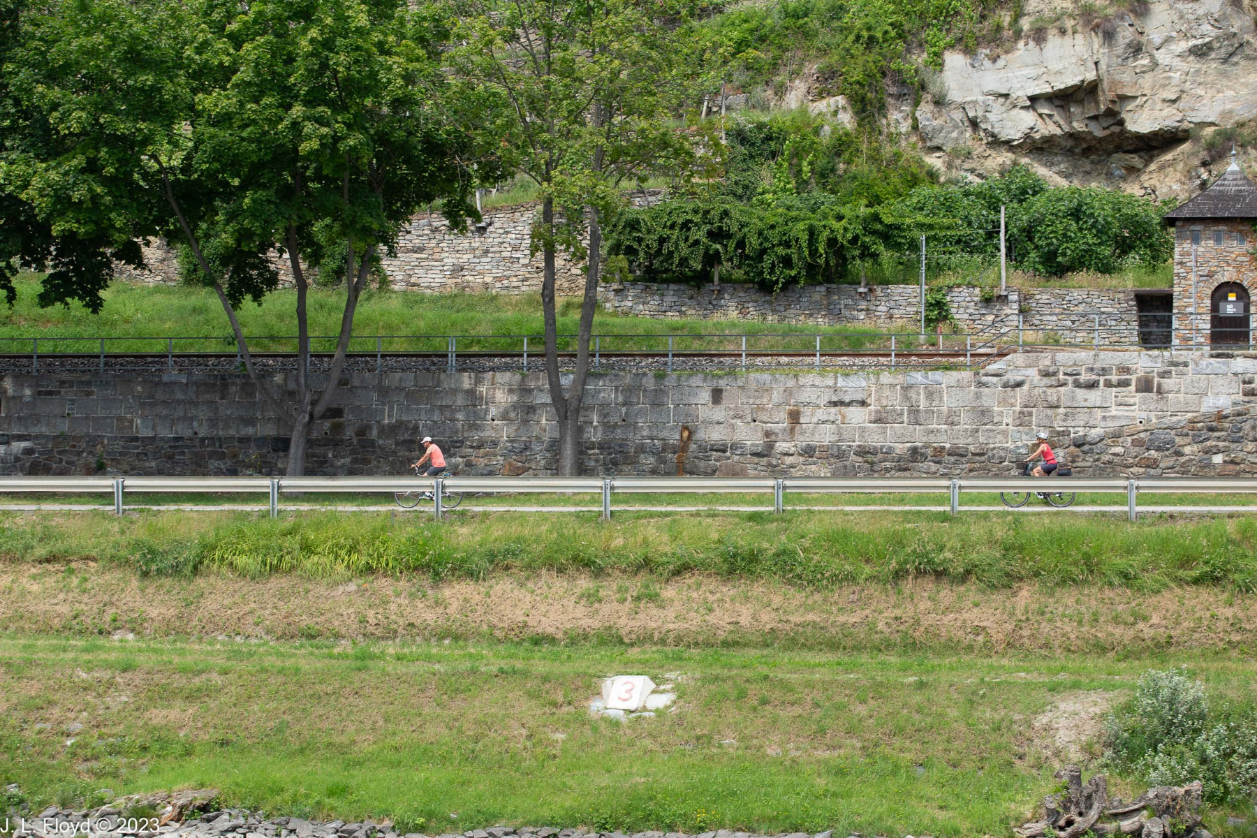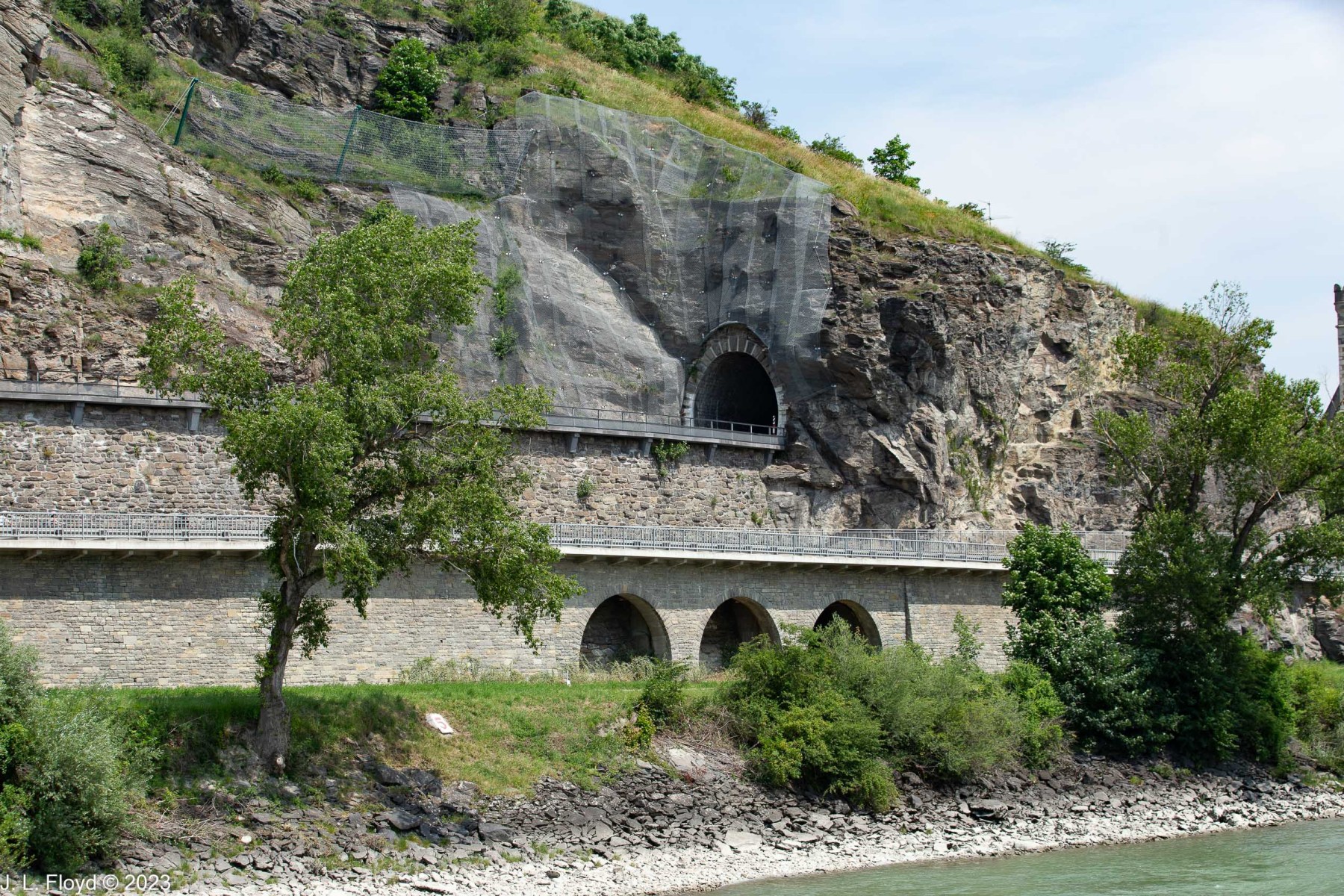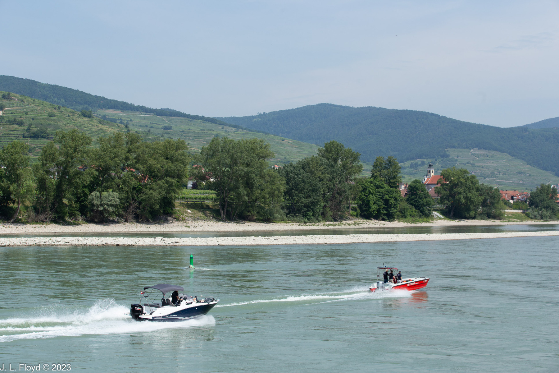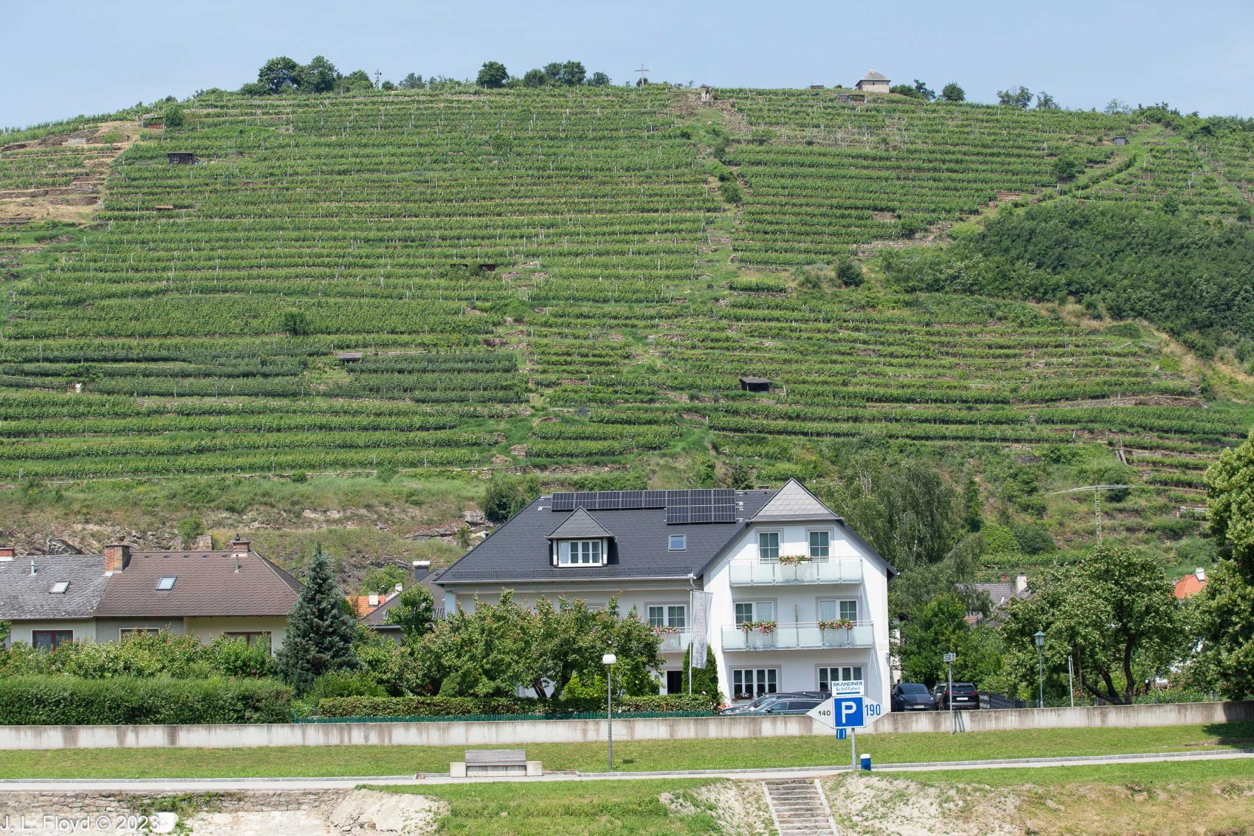 The Melk River flows almost parallel to the Danube, and through the town of Melk for a distance before it meets with the Danube. It creates a long peninsula which is part of the town of Melk but remains heavily wooded and relatively unspoiled. On the peninsula there is an arena, the Wachau Arena Melk, which is essentially a large theater tent where cultural events are hosted, most notably the Sommerspiele Melk, a drama and music festival held annually in June — sounds like a pleasant environment and experience.
