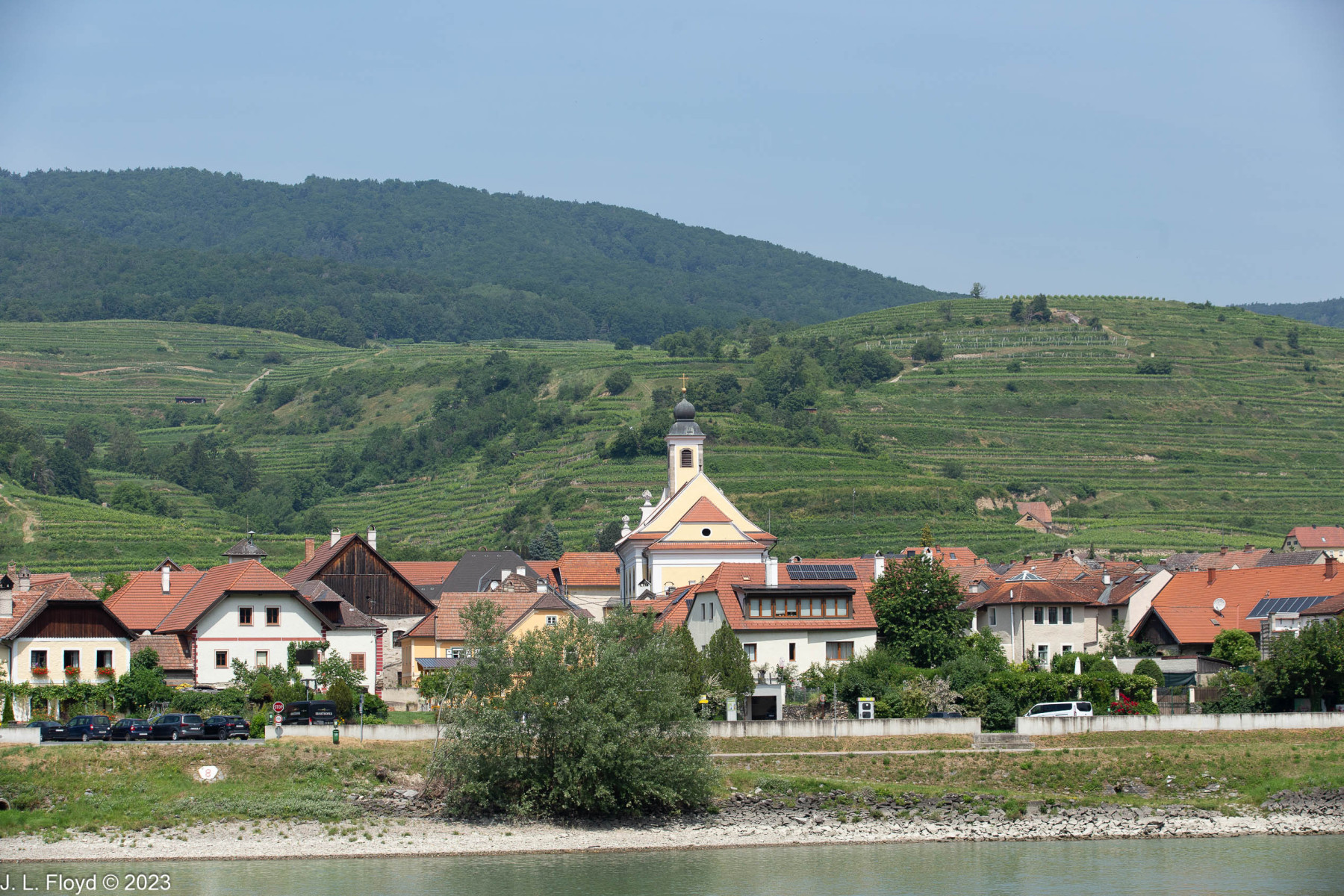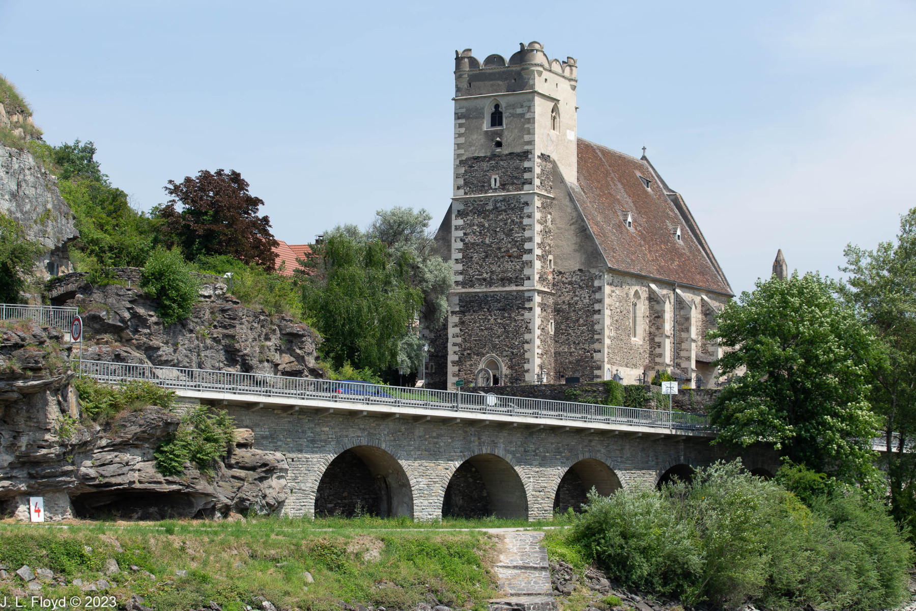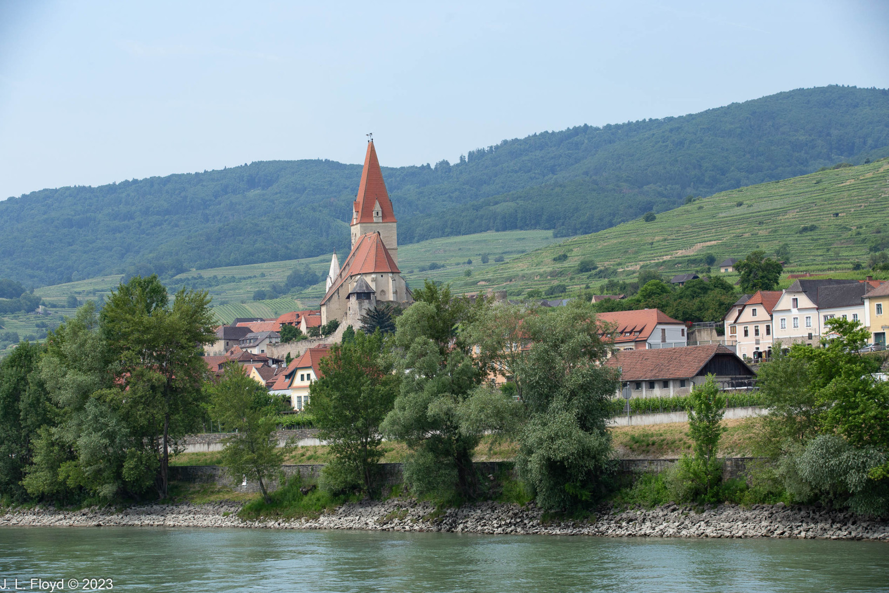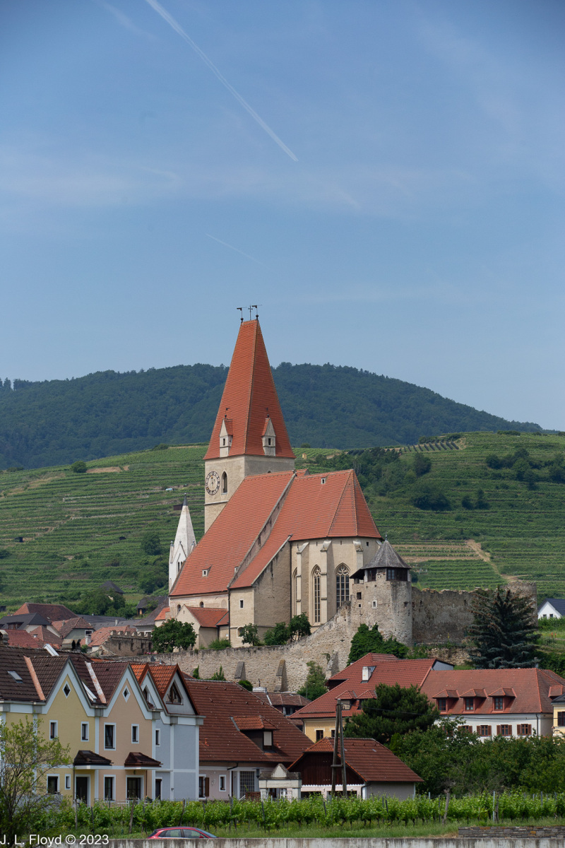 As it flows east from Passau, which is on the border of Austria and Germany, the Danube takes a turn to the northeast when it reaches the Wachau Valley. The town of Melk lies on the south bank of the Danube just as it starts to make that northeast turn, and Melk Abbey is on a rocky outcrop high above, overlooking the river. It is a striking setting.