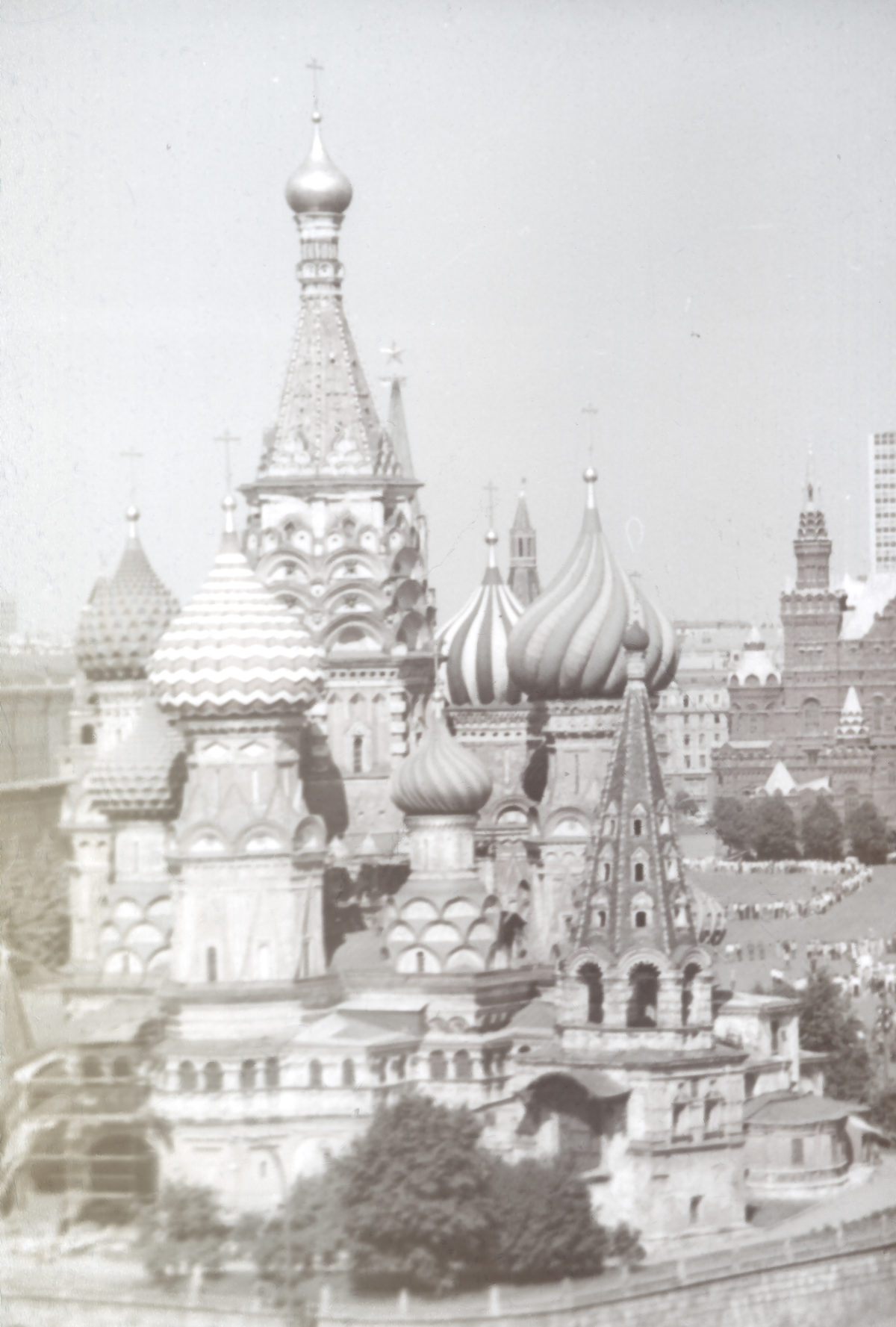 I also found that Soviet-made color slides of some of the major tourist attractions – mainly in Moscow – were available for purchase in shops. To save film, I avoided photographing some of the major sights myself and concentrated on shooting those which couldn’t be found on the commercial slides. Unfortunately, the Soviet-made slides turned out to be junk. Within a few years they had mostly faded into washed-out shades of gray. I’ve used a few of them in these chronicles anyway, and I’ve included one in the header of this page just to show what I mean.