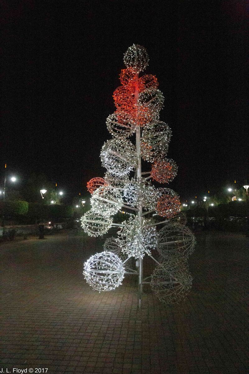 The parks south of the hotel sprouted light sculptures in a form that appeared to mimic Christmas trees. I doubt whether the local inhabitants thought of them as such, but they nevertheless made a comforting contribution to the ambience of the place.